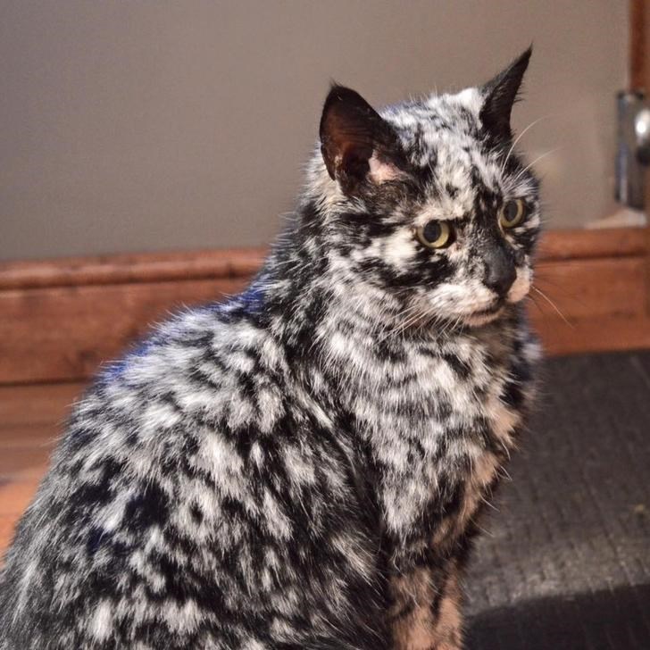 Vitiligo in black cats. Scrappy The Cat Born Pure Black But Gradually Losing Colour Due To Vitiligo Pretty Cats Cute Animals Cats. If the body mistakes melanocytes as foreigners it will attack and kill these cells.
